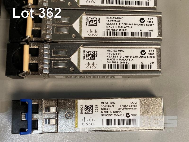 7 x CISCO GLC-SX-MMD SFP TRANSCEIVERS, 1 x CISCO GLC-LH-SM SFP TRANSCEIVER