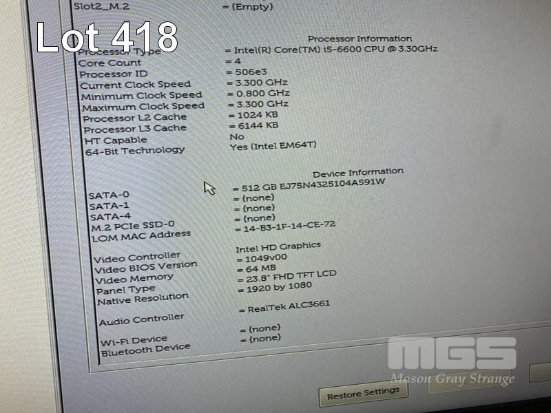 ALL-IN-ONE PC, DELL OPTIPLEX 7450, CORE i5 6600 (6TH GEN) @ 3.3GHz, 16GB DDR4 RAM, 512GB SSD, INBUILT 23.8" FHD WIDESCREEN (1920x1080), INTEL HD VIDEO, WEBCAM, 7 x USB, 1 x USB-C, WINDOWS 10 HOME INSTALLED, KEYBOARD & MOUSE S/N:4BZ0DK2