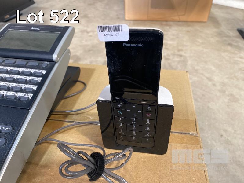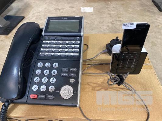 8 x PANASONIC KX-PRSA10AZ CORDLESS PHONES WITH DESKTOP CHARGERS, 1 x NEC DT300 SERIES DTL-24D-1A DESKTOP PHONE