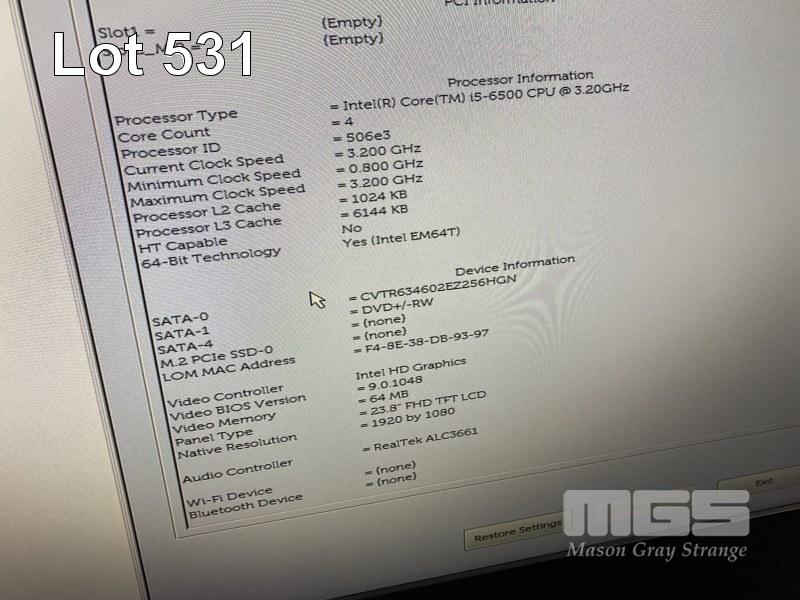 ALL-IN-ONE PC, DELL OPTIPLEX 7440, CORE i5 6500 (6TH GEN) @ 3.2GHz, 8GB DDR4 RAM, 256GB SSD, DVD-RW, INBUILT 23.8" FHD WIDESCREEN (1920x1080), INTEL HD VIDEO, WEBCAM, 8 x USB, WINDOWS 10 HOME INSTALLED, KEYBOARD & MOUSE S/N:9HZYKG2