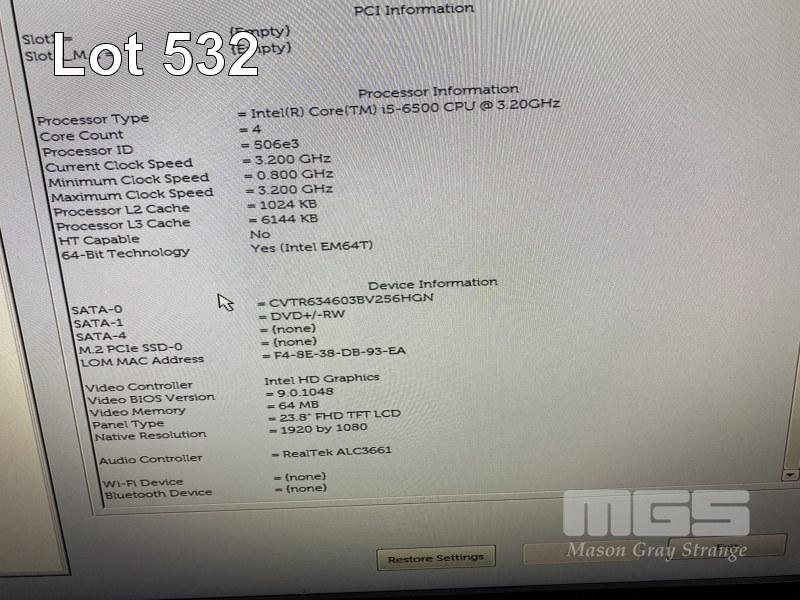 ALL-IN-ONE PC, DELL OPTIPLEX 7440, CORE i5 6500 (6TH GEN) @ 3.2GHz, 8GB DDR4 RAM, 256GB SSD, DVD-RW, INBUILT 23.8" FHD WIDESCREEN (1920x1080), INTEL HD VIDEO, WEBCAM, 8 x USB, WINDOWS 10 HOME INSTALLED, KEYBOARD & MOUSE S/N:9J05LG2