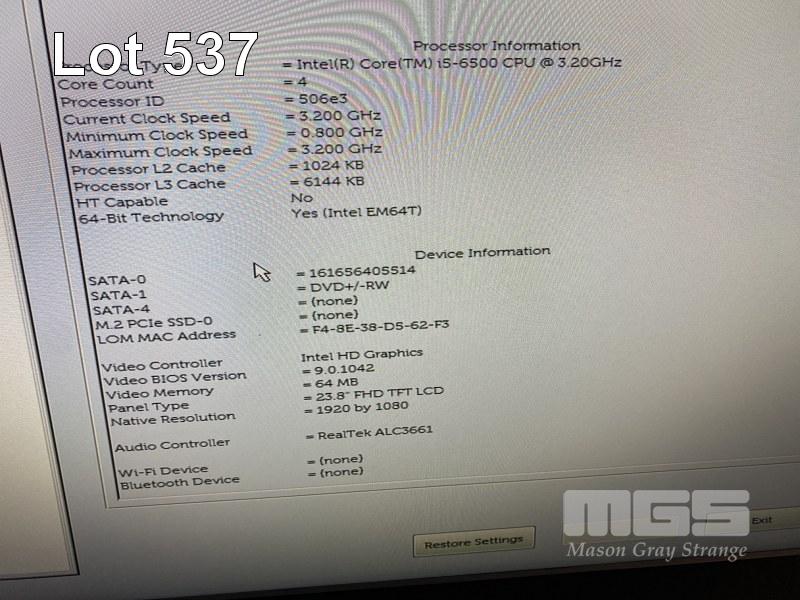 ALL-IN-ONE PC, DELL OPTIPLEX 7440, CORE i5 6500 (6TH GEN) @ 3.2GHz, 8GB DDR4 RAM, 256GB SSD, DVD-RW, INBUILT 23.8" FHD WIDESCREEN (1920x1080), INTEL HD VIDEO, WEBCAM, 8 x USB, WINDOWS 10 HOME INSTALLED, KEYBOARD & MOUSE S/N:51W9HD2