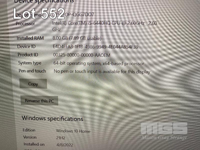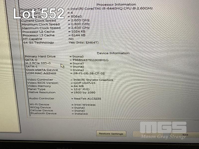 LAPTOP, DELL LATITUDE E5570, CORE i5 6440HQ (6TH GEN) @ 2.6GHz, 8GB DDR4 RAM, 256GB SSD, 15.6" WIDESCREEN (1920x1080), INTEL SKYLAKE GRAPHICS, Wi-Fi, BLUETOOTH, WINDOWS 10 HOME INSTALLED & POWER SUPPLY S/N:HWTNQC2