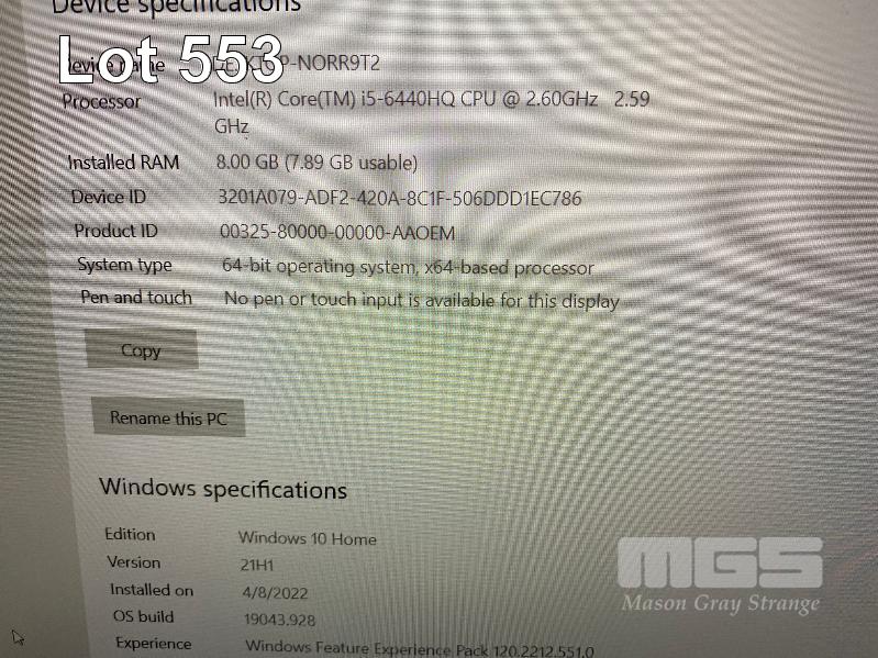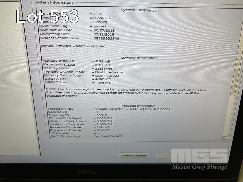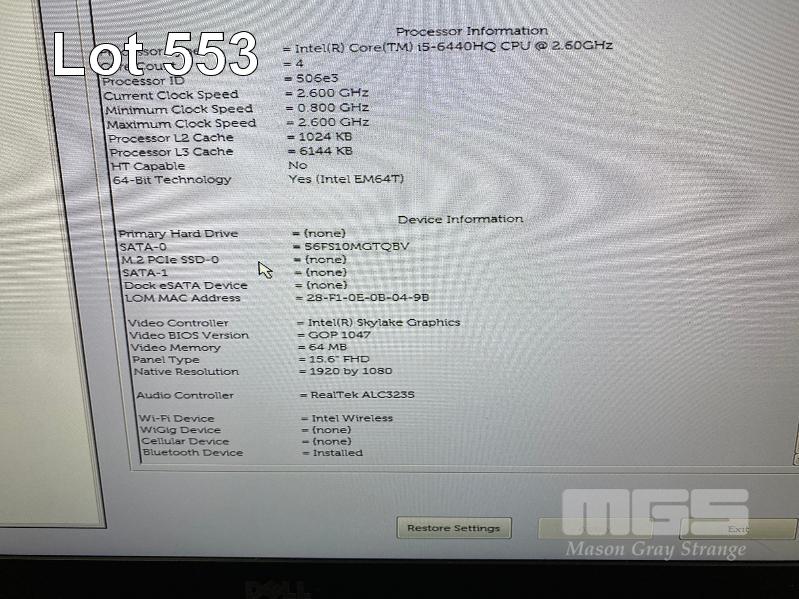 LAPTOP, DELL LATITUDE E5570, CORE i5 6440HQ (6TH GEN) @ 2.6GHz, 8GB DDR4 RAM, 256GB SSD, 15.6" WIDESCREEN (1920x1080), INTEL SKYLAKE GRAPHICS, Wi-Fi, BLUETOOTH, WINDOWS 10 HOME INSTALLED & POWER SUPPLY (NOTE: WHITE SPOT SCREEN BLEMISHES, MARKS ON SCREEN) S/N:HP7RGC2