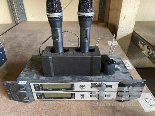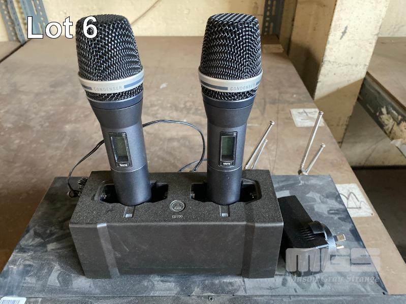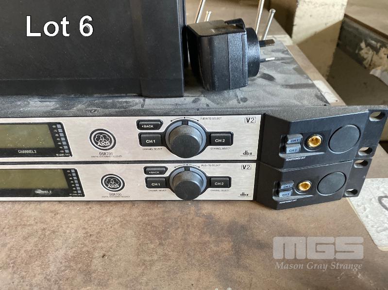 2 x AKG DSR700 V2 DIGITAL WIRELESS STATIONARY RECEIVERS WITH 2 x DHT700 HANDHELD MICROPHONES & CU700 CHARGING UNIT WITH POWER SUPPLY