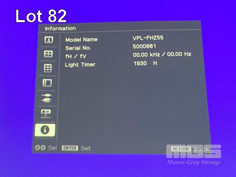 LASER PROJECTOR, SONY VPL-FHZ55 WUXGA 3LCD, 4,000 LUMENS, HDMI INPUT, 1,930 HOURS SHOWING WITH REMOTE
