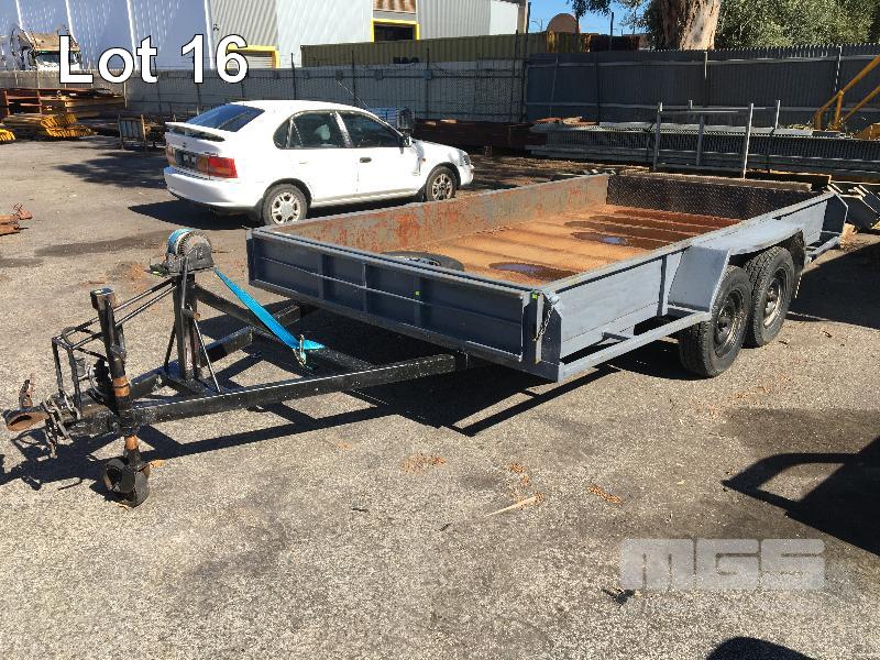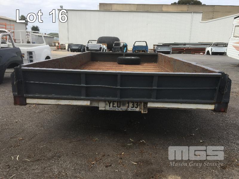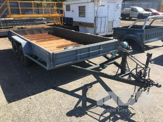 1987 OLYMPIC 14 x 6.3' TANDEM AXLE CAR CARRY TRAILER REG: YEU 133 (SA) VIN / CHASSIS: A9 50mm BALL HITCH, BRAKES, RAMPS, HAND WINCH & SPARE WHEEL TYRES NEAR NEW (WITH PAPERS)