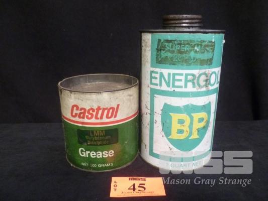 CASTROL GREASE TIN, NET 500 GRAMS & BP ENERGOL TIN, ONE QUART NET