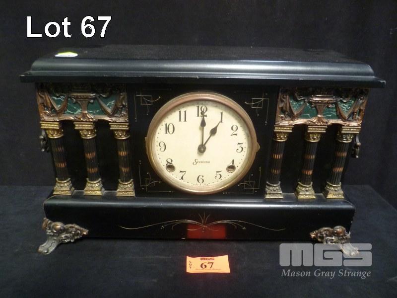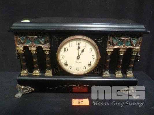 SESSIONS MANTLE CLOCK, BLACK GLOSS TIMBER CASE, WIND UP MECHANISM