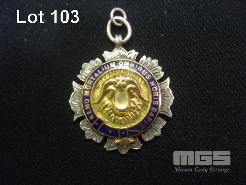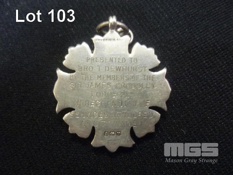 SILVER HALLMARKED MASONIC PENDANT, 'PRESENTED TO BRO T. DEWHURST, BY THE MEMBERS OF THE SIR JAMES CROSSLEY LODGE 212'