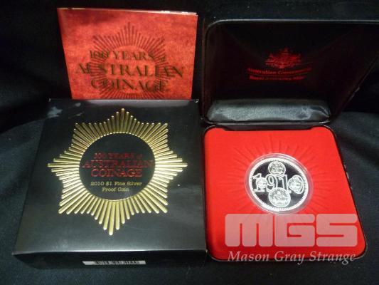ROYAL AUSTRALIAN MINT, 2010, $1 FINE SILVER PROOF COIN, 100 YEARS OF AUSTRALIAN COINAGE