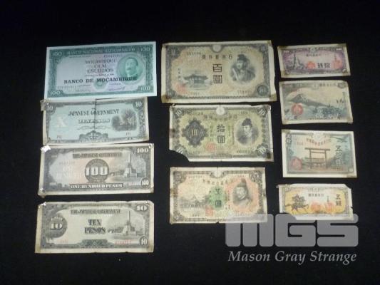 ASSORTED WORLD BANKNOTES, INC; CHINESE, JAPANESE, MOZAMBIQUE