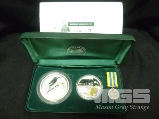 THE PERTH MINT, COIN & MEDALLION TRIBUTE SERIES, SILVER PROOF COLOURED COINS & MEDALLION, AUSTRALIANS AT WAR, KOREAN WAR 1950-1953, KOREAN WAR PRIVY MARK COIN 2oz PURE SILVER, KOREAN WAR MEDALLION 1oz PURE SILVER & KOREAN MEDAL, 788/1000