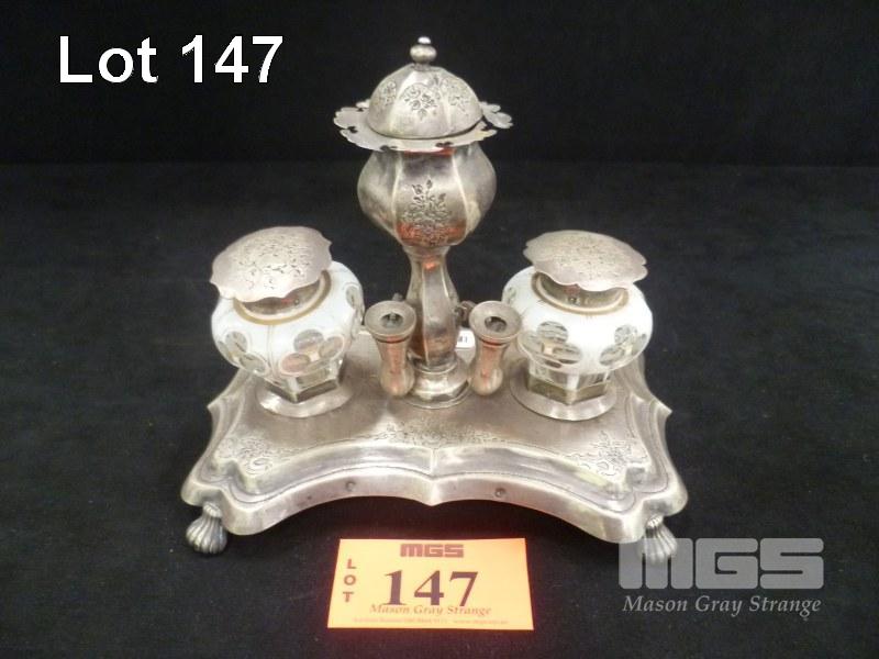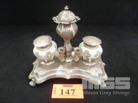 SILVER INKWELL SET, HALLMARKED