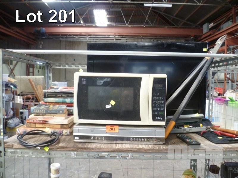 LG 32" LCD TV WITH REMOTE, 32LK450-TA, LG DVD/VCR COMBO, NO REMOTE, TIFFANY MICROWAVE, TOOLS & BOOKS