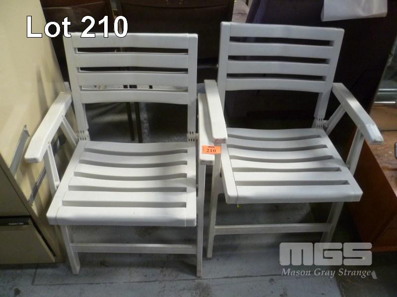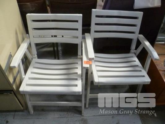 PAIR OF WHITE, PLASTIC OUTDOOR CHAIRS