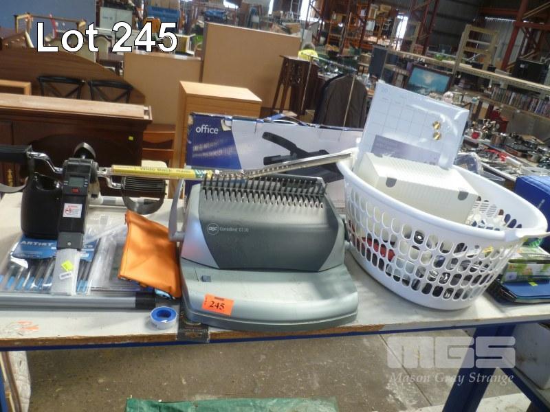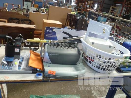 OFFICE PAPER CUTTER, GBC COMBBIND, PEDAL EXERCISER, BASKETS, ETC