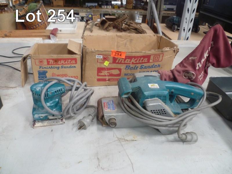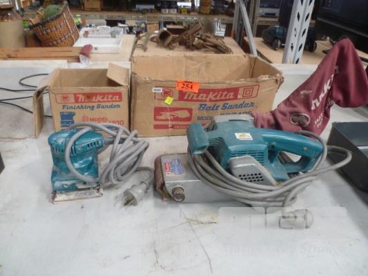 2 x MAKITA SANDERS INC, BELT SANDER, MODEL: 9924DB & FINISHING SANDER, MODEL: B04510
