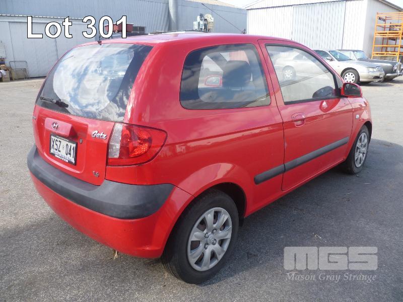 2006 HYUNDAI GETZ HATCH REG: XSZ 041 (SA) (EXPIRED) VIN: KMHBT31BR7U160156 ENG: G4ED6589464 ODO: 132,715 KM 1.6 LITRE, 5 SPEED MANUAL, PETROL, RED, 3 DOORS, 5 SEAT, AIR BAG, AIR CON, CD PLAYER, CENTRAL LOCKING, POWER WINDOWS, SPARE WHEEL (NO PAPERS, WITH 1 KEY/S, NO OWNER'S MANUAL, NO SERVICE BOOKS) CONDITION: CHECK ENGINE LIGHT ON -