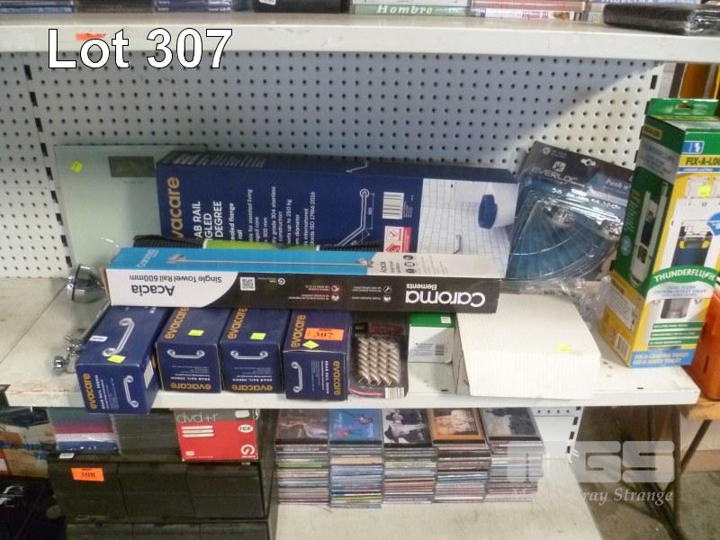 EVACARE HAND RAILS, SHOWER HEAD, SHOWER SHELVES, CISTERN FLUSH, ETC