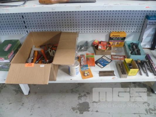 ASSORTED FASTENERS, TAPER SHANK DRILL & HOEL SAW SETS, LONG DRILL BITS, ETC