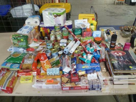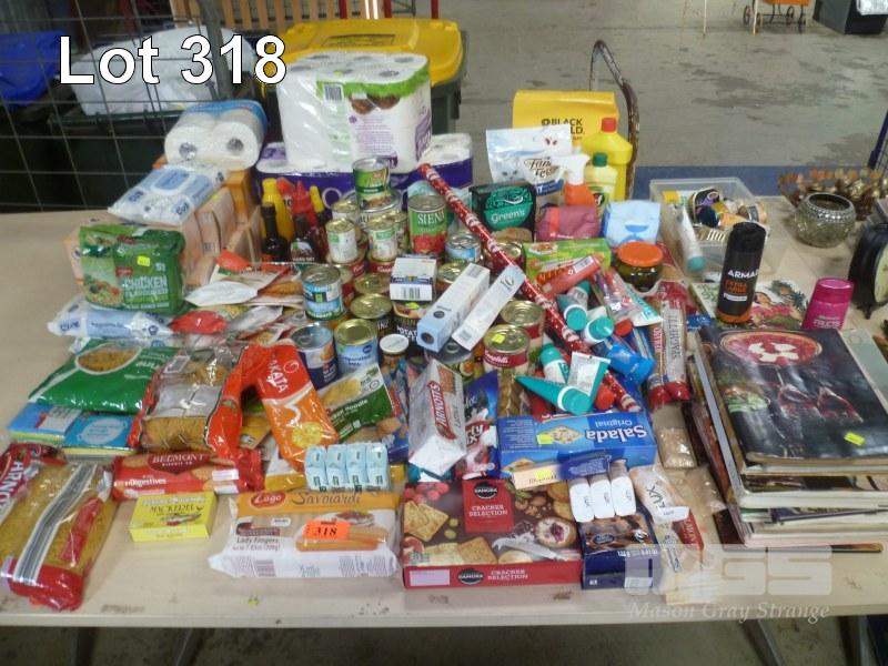 ASSORTED GROCERIES & BOOKS, 1 x TABLE