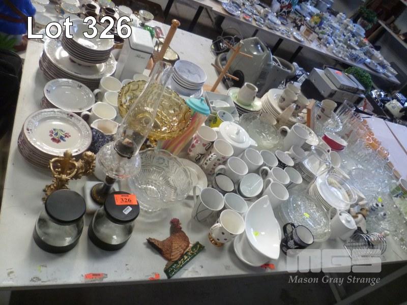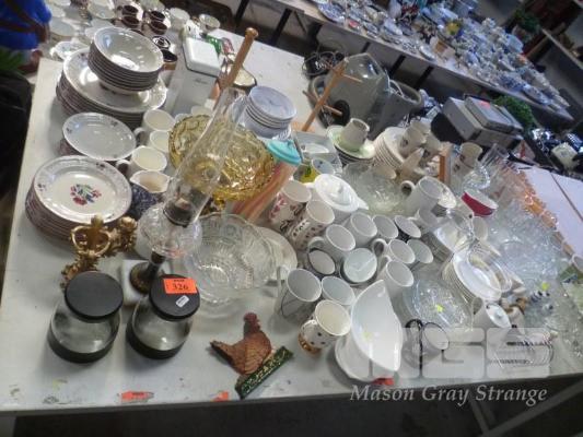 ASSORTED CROCKERY, GLASSWARE, ETC, 1 x TABLE