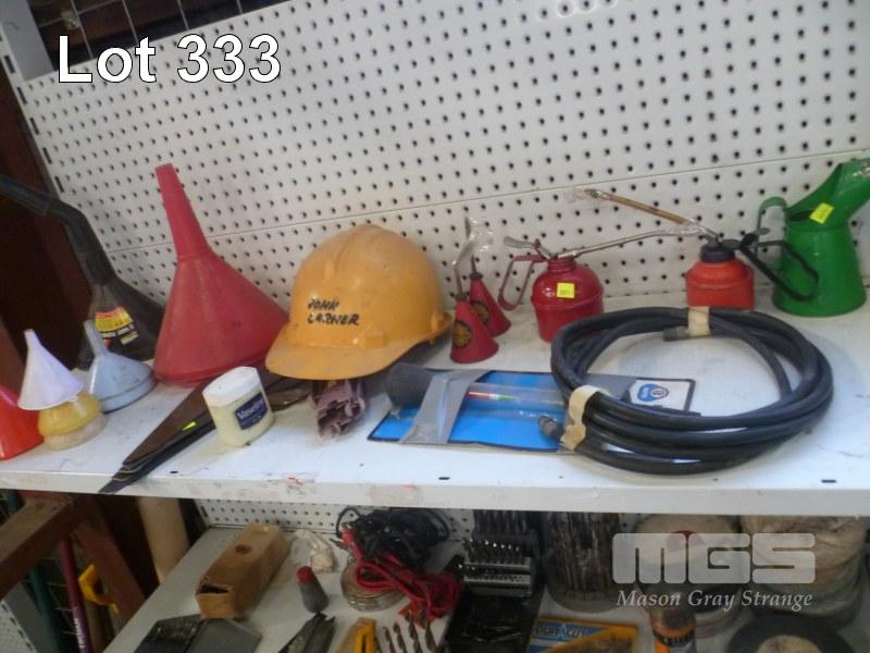 4 x HANDY OILERS, FUNNELS, GAS HOSE, ETC