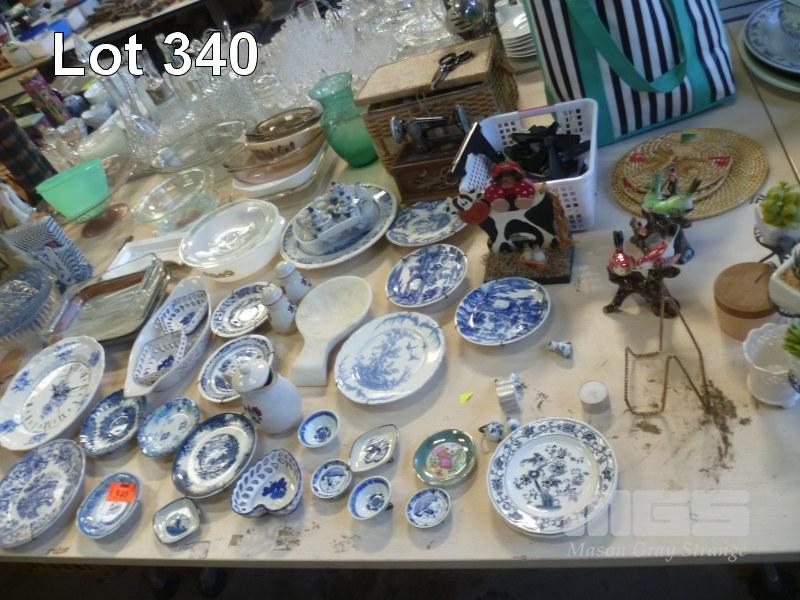 ASSORTED BAKING DISHES, WILLOW WARE, UTENSILS, ETC, 1 x TABLE