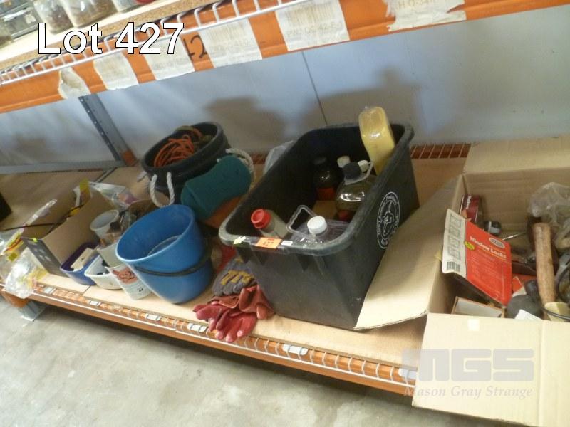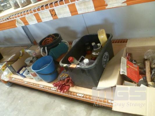 ASSORTED HARDWARE, CLEANING FLUIDS, CLOTH, ROPES, GAP FILLERS, ETC
