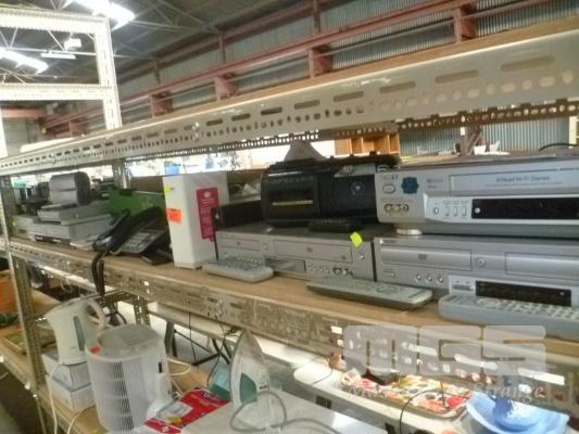 HOUSEHOLD ELECTRICAL APPLIANCES AND ELECTRONICS INCLUDING DVD PLAYERS, CORDLESS TELEPHONES, "CHIPTECH" PERSONAL RESPONSE SYSTEM, BLACK DIGITAL BLOOD PRESSURE MONITOR ETC (1 x SHELF).