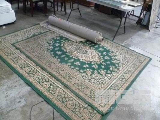 2 x MATCHING FLOOR RUGS, ONE 190 x 260 CM AND ONE 160 x 213 CM. RUNNER/MAT AND ROLL OF CARPET.