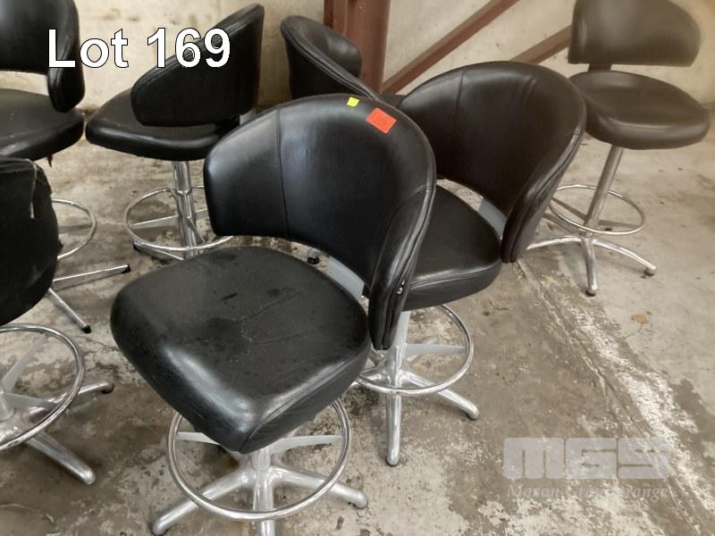 8 x SWIVEL POKIE/BAR STOOLS, BLACK VINYL, (SOME WORN)