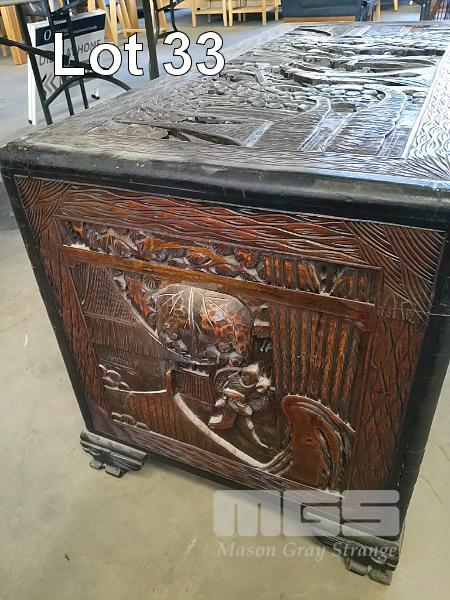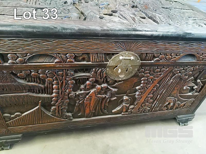 LARGE HAND CARVED CHINESE CAMPHOR CHEST. 52 x 104 x 60(H) CM.