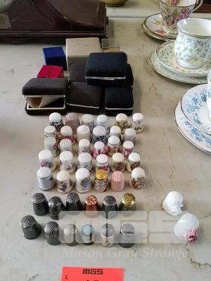 42 x COLLECTABLE PORCELAIN AND METALLIC THIMBLES FROM AROUND THE WORLD & BOXES.