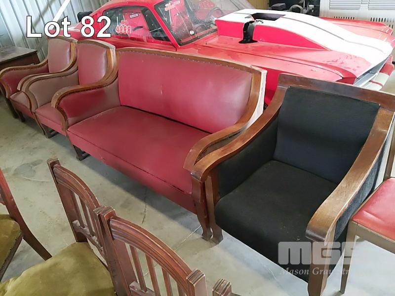 BAY LOT OF VINTAGE & MID-CENTURY CHAIRS INCLUDING SET OF ART-DECO WALNUT BENT-ARM CLUB CHAIRS COMPRISING 3 x ARM CHAIRS AND 3-SEATER SOFA, 7 x SWEDISH STYLE MID-CENTURY DINING CHAIRS AND 6 x EDWARDIAN DINING CHAIRS ETC.