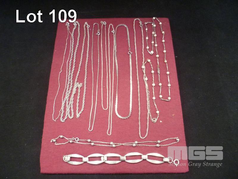 SILVER NECKLACES & BRACELETS MARKED 925, 835, ETC