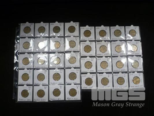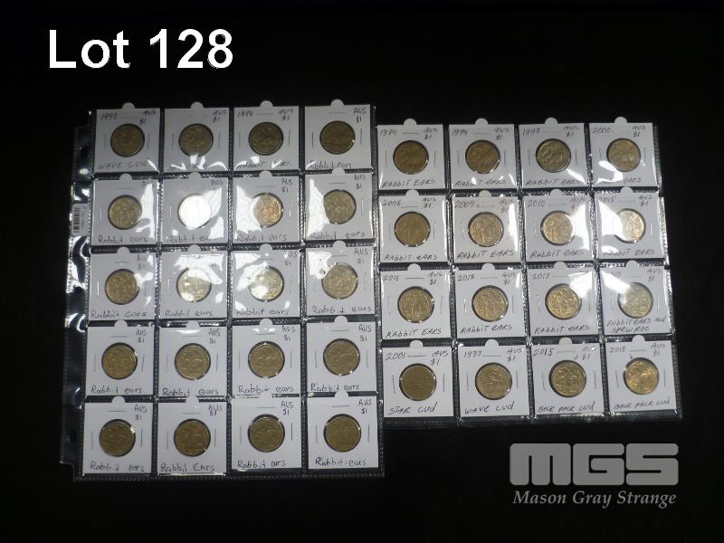 36 X AUSTRALIA, $1 ERROR COINS, INC; WAVE CUD, RABBIT EARS, SPEW ROO, ETC
