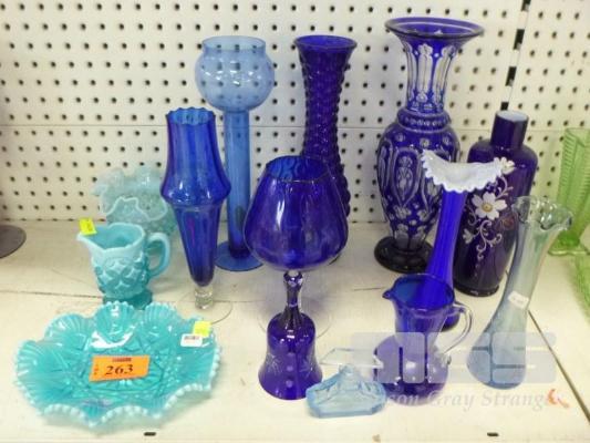 ASSORTED BRISTLE BLUE & BLUE ART GLASS
