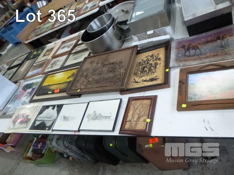 ASSORTED PRINTS & WALL ART, 1 x TABLE
