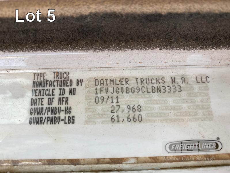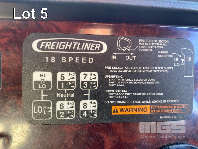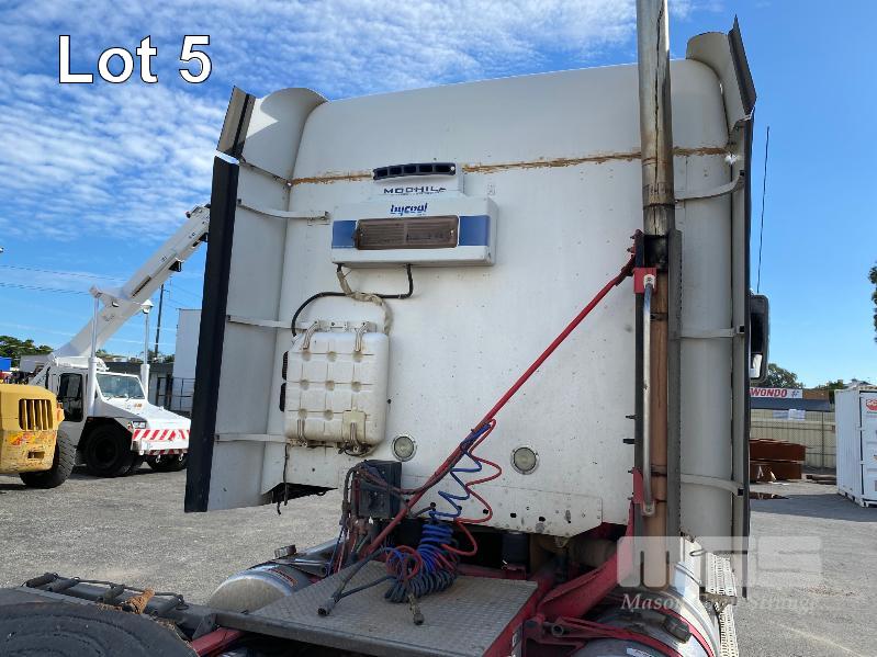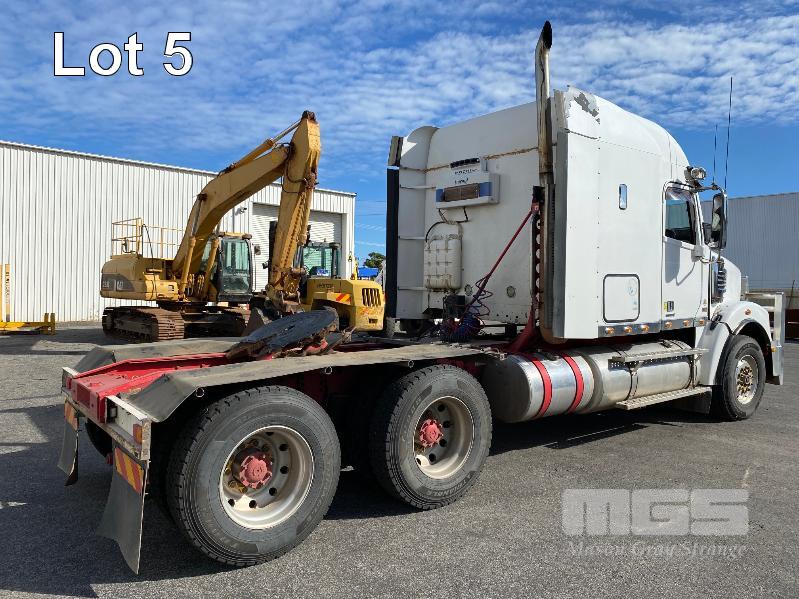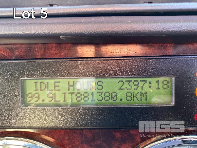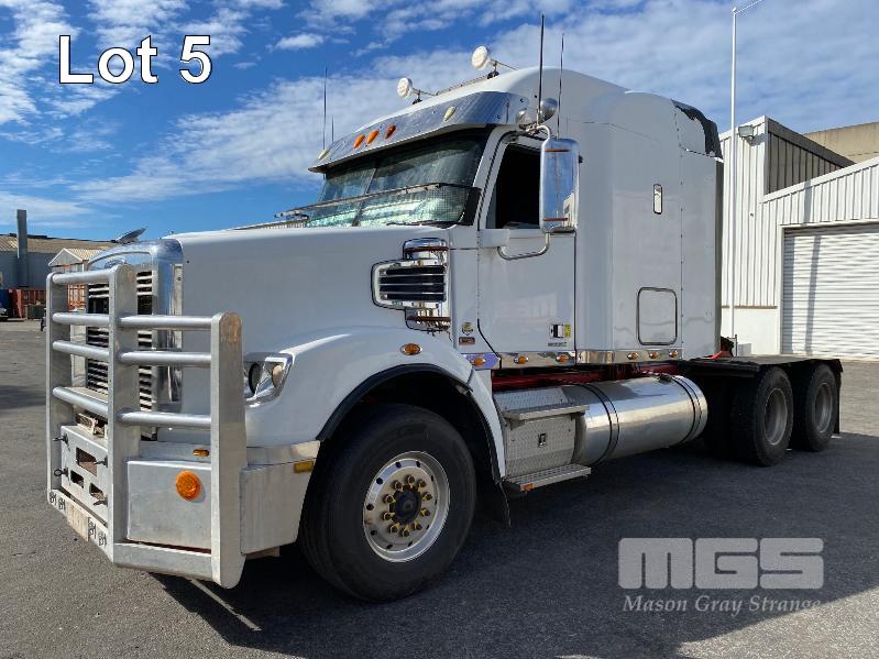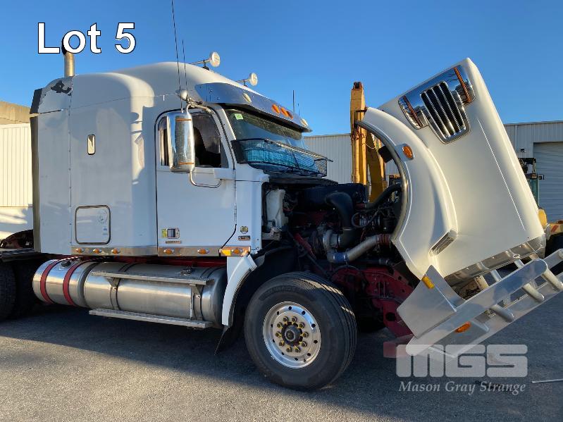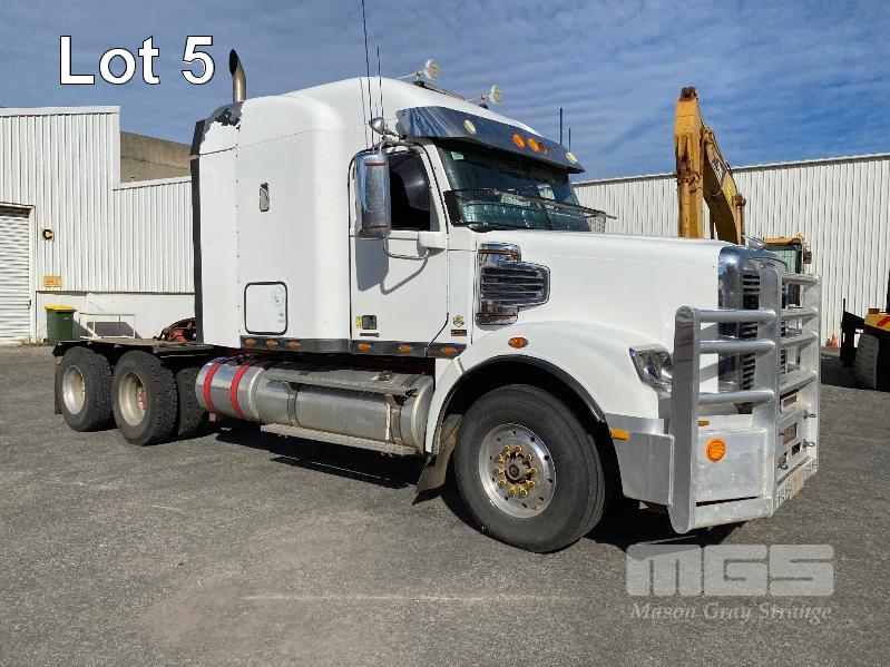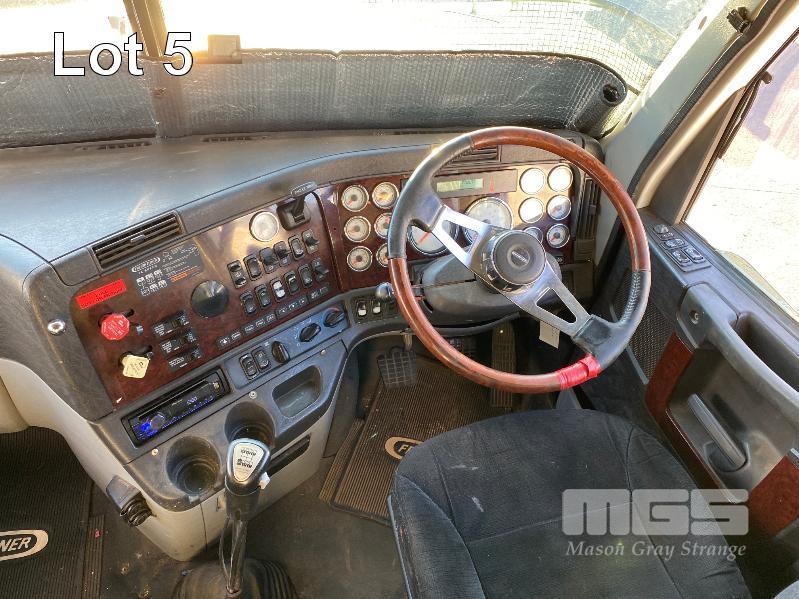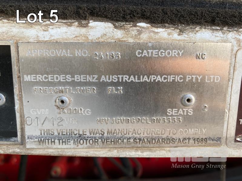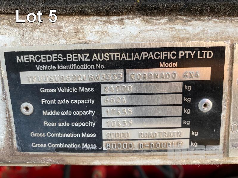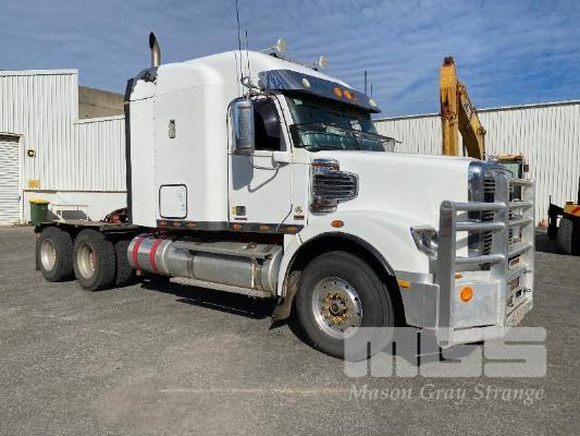 2011 FREIGHTLINER FLX CORONADO SD 6x4 PRIME MOVER REG: N/A VIN: 1FVJGVBG9CLBN3333 ENG: 79508707 ODO: 881,380kms SHOWING GVM: 24,000kg GCM: 90,000kg CUMMINS 15x485, EATON FULLER 18 SPEED MANUAL TRANSMISSION, TURBO DIESEL, AIRBAG SUSPENSION, WHITE DUCO, 11R22.5 2 DOORS, 2 SEAT, AIR CON, ALLOY RIMS, B DOUBLE RATED, BULL BAR, HIGH RISE SLEEPER CAB, ROCK SCREEN, IDLE HOURS: 2,397 MOCHILA SLEEPER A/C SYSTEM (WITH 1 KEY/S)