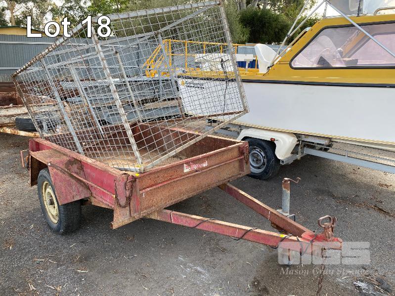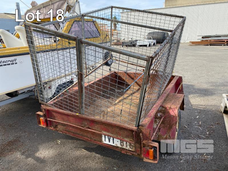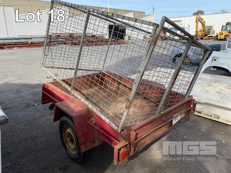 SINGLE AXLE TRAILER, 6x4' (1800 x 1200mm) REG: TVT 816 (SA) VIN: WB125 RED, BALL HITCH, CAGE 1000mm (H), NOT ATTACHED RUSTY WITH PAPERS