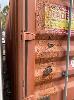 STEEL SHIPPING CONTAINER, 20' RED, WATER TIGHT SOME RUST AND PAINT PEALING FROM FIRE DAMAGE