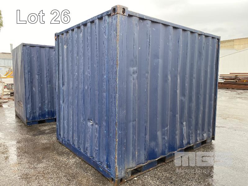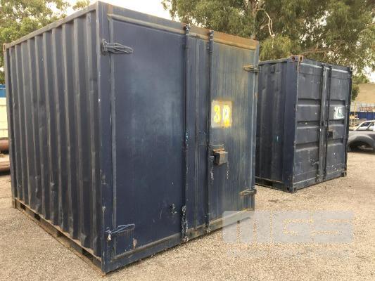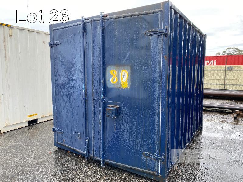 10' SHIPPING CONTAINER/STORAGE POD, BLUE, RUST HOLES IN ROOF