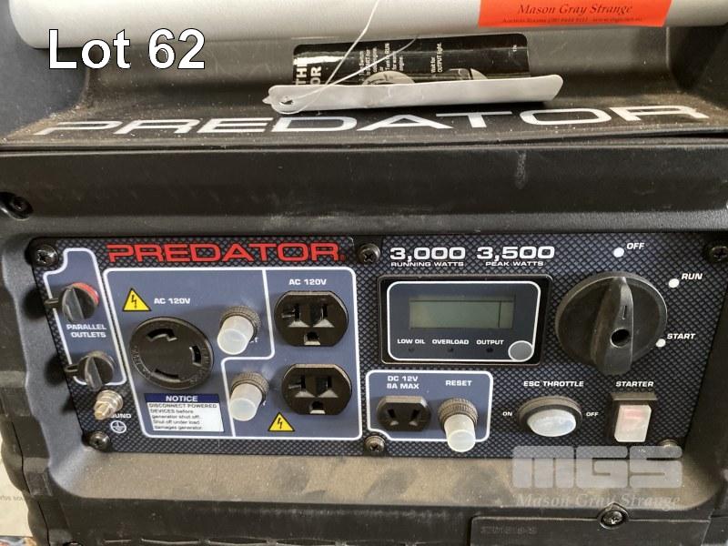 PACKAGED GENSET, PREDATOR 3500w, INVERTER 3 x 120V OUTLETS, PETROL ENGINE (SLIGHT PLASTIC COVER DAMAGE)
