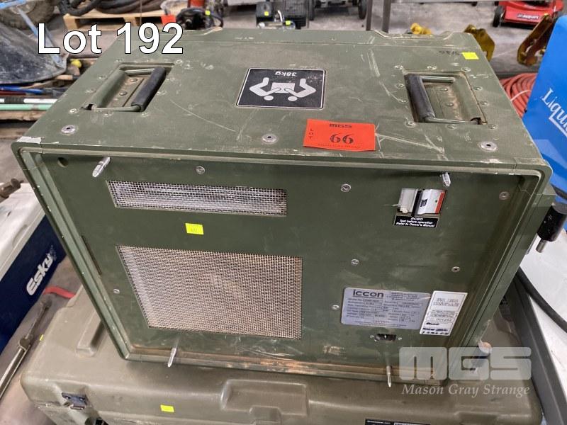PORTABLE REFRIGERATION A/C UNIT, ICCON MOD: CARU0810 EX MILITARY SPEC 1kw COOLING R134A REFRIGERANT 240V WITH TRANSPORT CASE, GREEN POLY