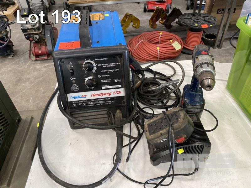 MIG WELDER, LIQUID ARC HANDYMIG 170I, 240V & CORDLESS DRILL, AEG, BATTERY & CHARGER