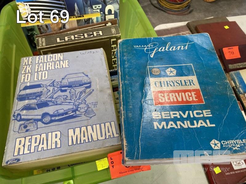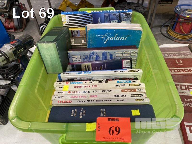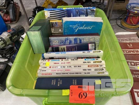 VINTAGE AUTOMOTIVE WORKSHOP MANUALS INC GREGORYS, HOLDEN HQ, TORANA, COMMODORE, ORIGINAL FORD FALCON, FAIRLANE & LTD, CHRYSLER VALIANT, GALANT, ETC 1 x TUB