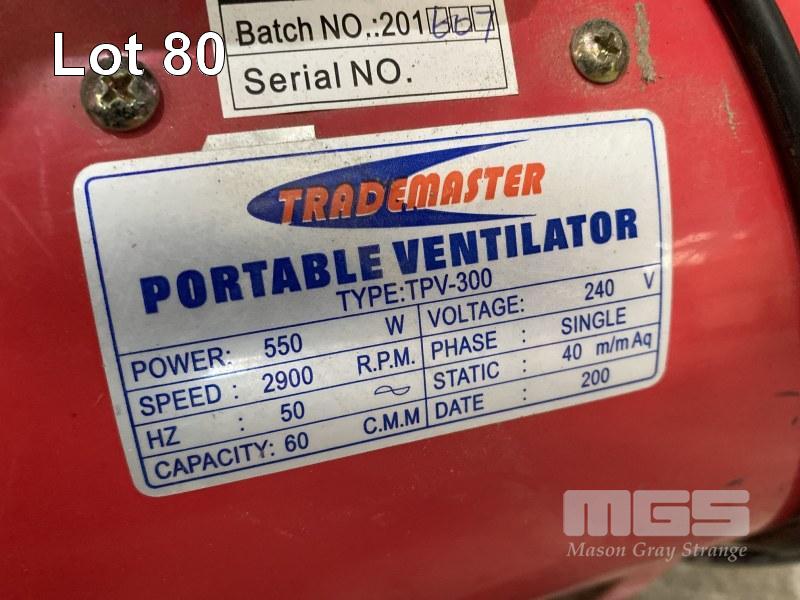 PORTABLE VENTILATOR DRUM FAN, TRADEMASTER TYPE: TPV-300 CAP: 60cmm 300m DIA 240V WITH DUCTING