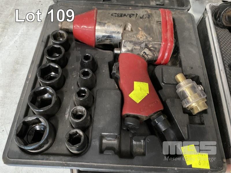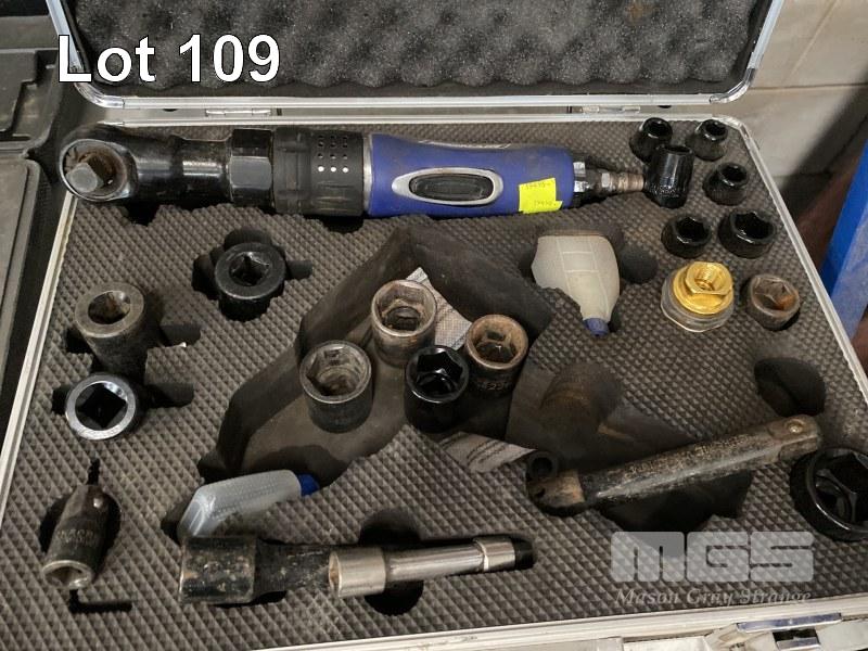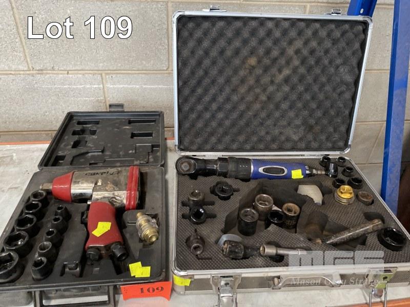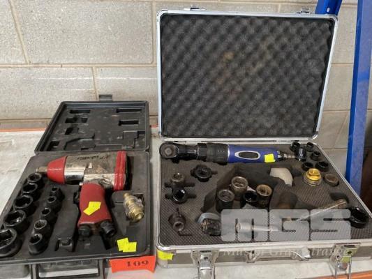 PNEUMATIC RATCHET WRENCH, IRON AIR MOD: 51183 1/2" DRIVE WITH ASSORTED SOCKETS & EXTENSION BARS IN CARRY CASE & PNEUMATIC IMPACT GUN, 1/2" WITH IMPACT SOCKETS IN CARRY CASE